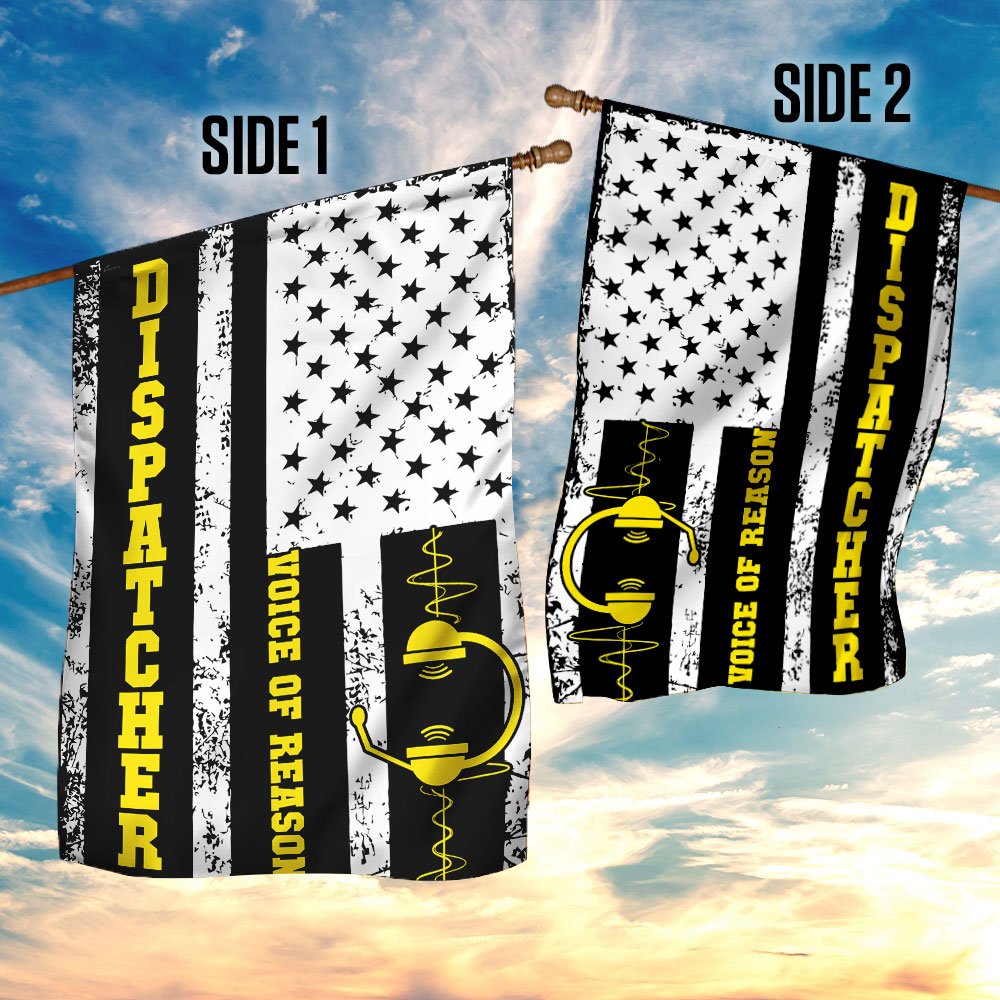All flags are manufactured to American quality standards and custom-made to order. You will never be disappointed by the Dispatcher. Voice Of Reason Flag.
