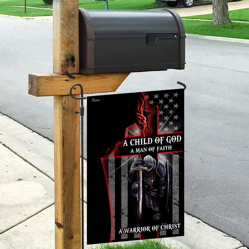 All flags are manufactured to American quality standards and custom-made to order. You will never be disappointed by the A Child Of God. A Man Of Faith. A Warrior Of Christ Flag.
