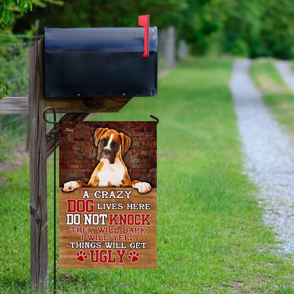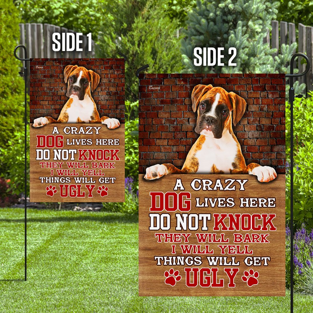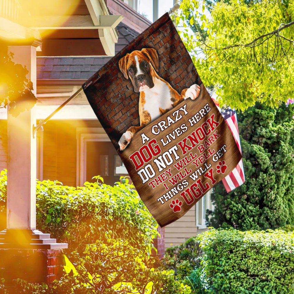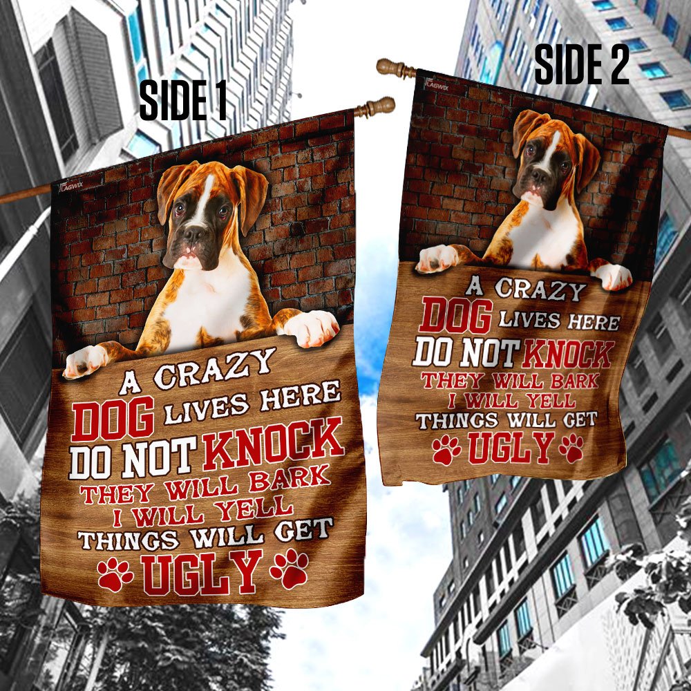 Take A Crazy Dog Lives Here Boxer Dog Flag To Decorate Your Home