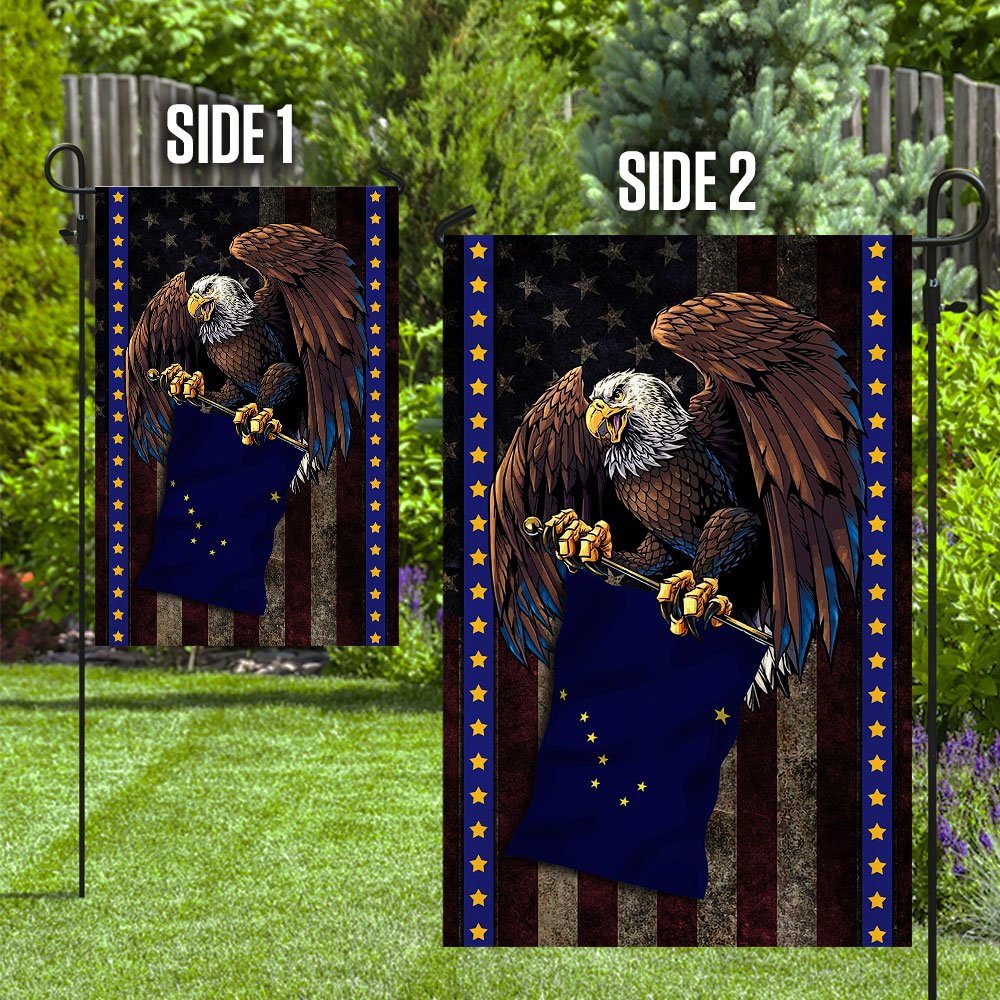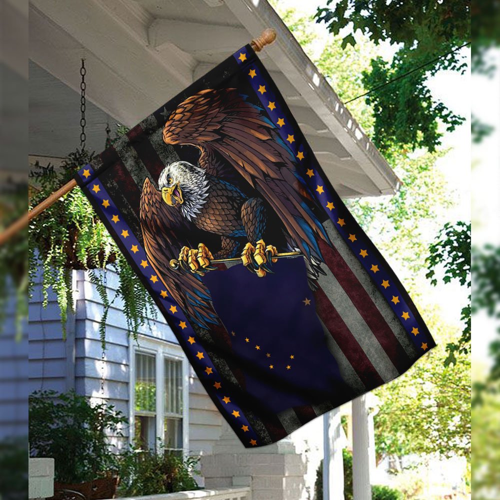 All flags are manufactured to American quality standards and custom-made to order. You will never be disappointed by the Alaska State Eagle Flag.