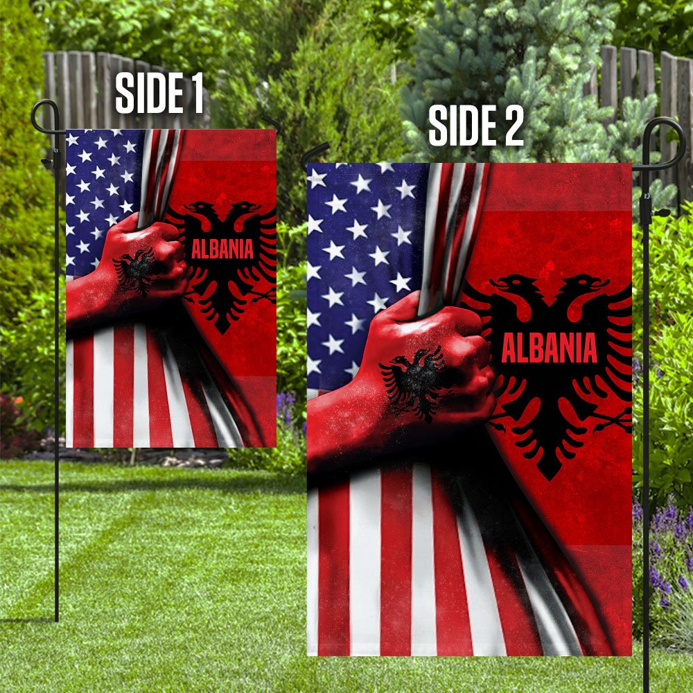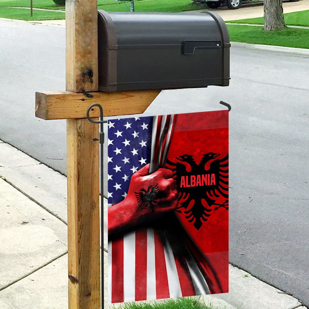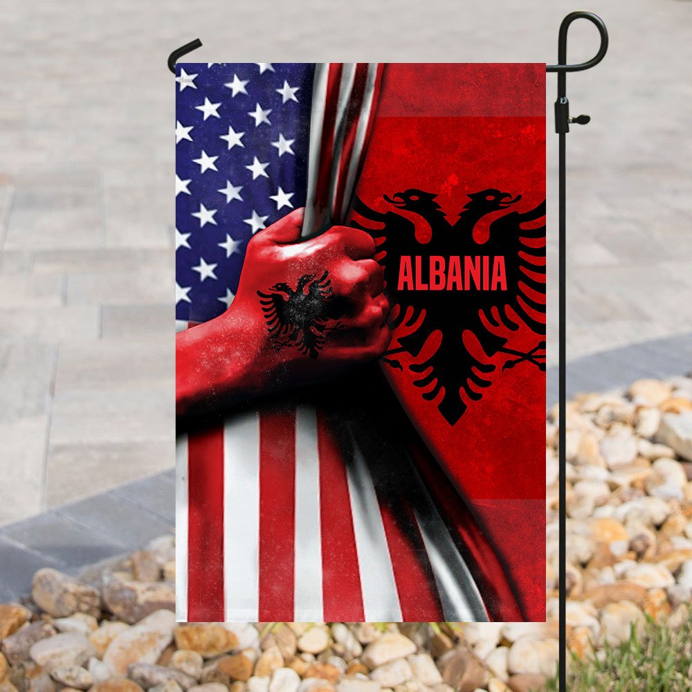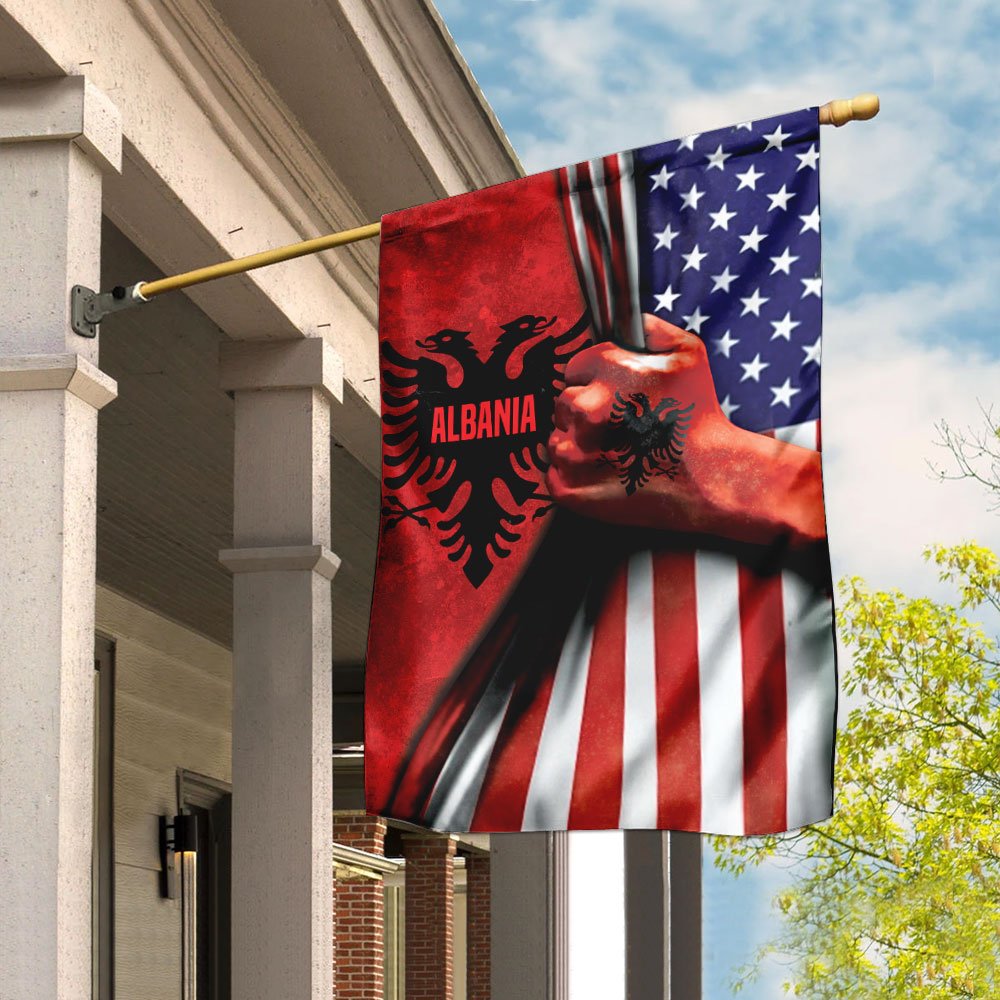 All flags are manufactured to American quality standards and custom-made to order. You will never be disappointed by the Albanian American Flag.