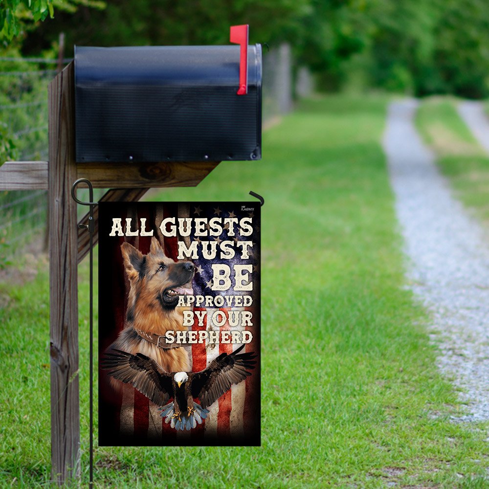 Take All Guests Must be Approved By Our Shepherd. German Shepherd Flag To Decorate Your Home
