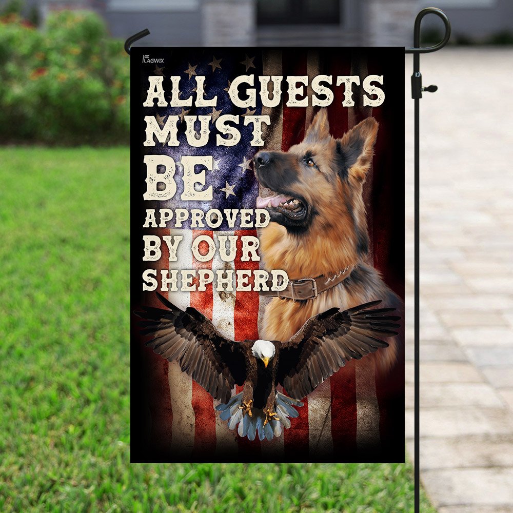 All flags are manufactured to American quality standards and custom-made to order. You will never be disappointed by the All Guests Must be Approved By Our Shepherd. German Shepherd Flag.