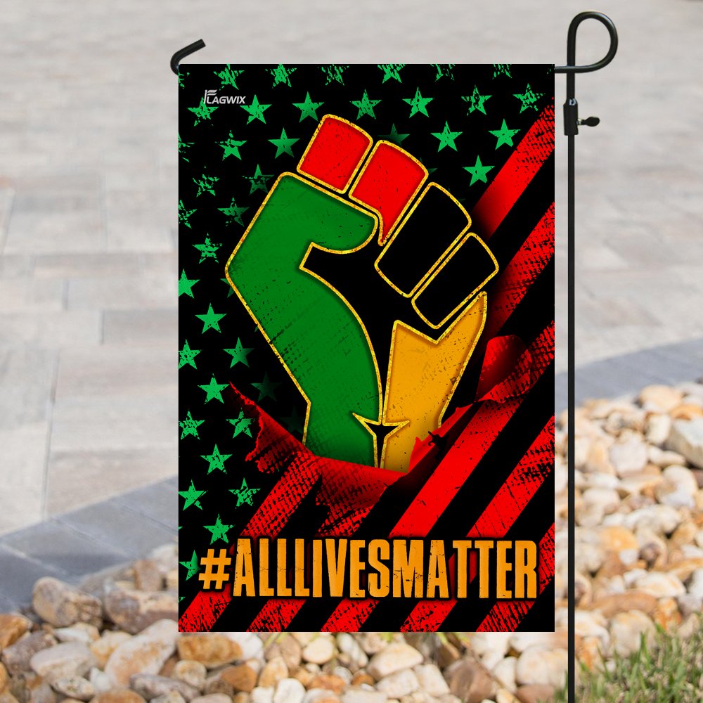 All flags are manufactured to American quality standards and custom-made to order. You will never be disappointed by the All Lives Matter African American Flag.