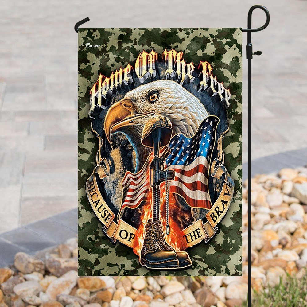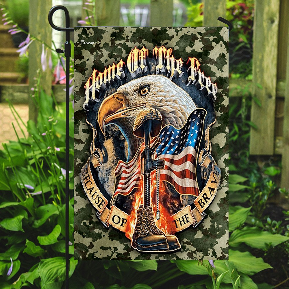All flags are manufactured to American quality standards and custom-made to order. You will never be disappointed by the America Eagle. Home Of The Free Because Of The Brave Flag.