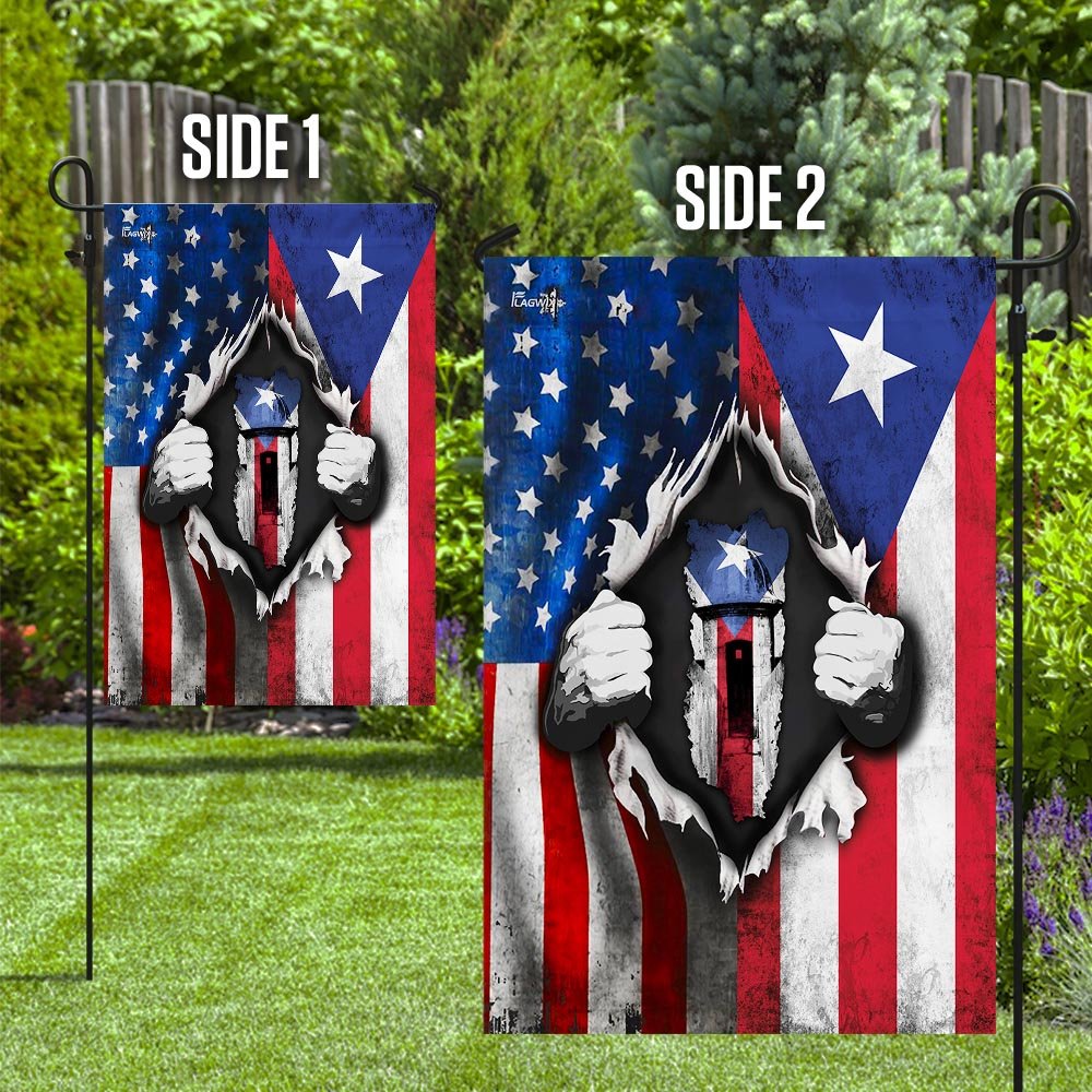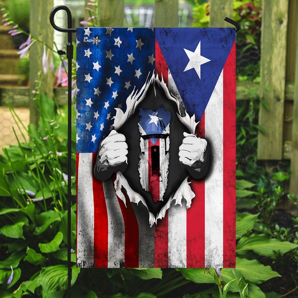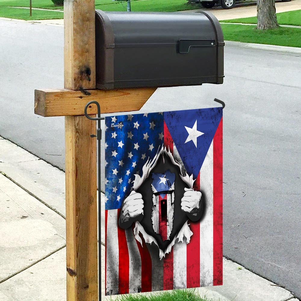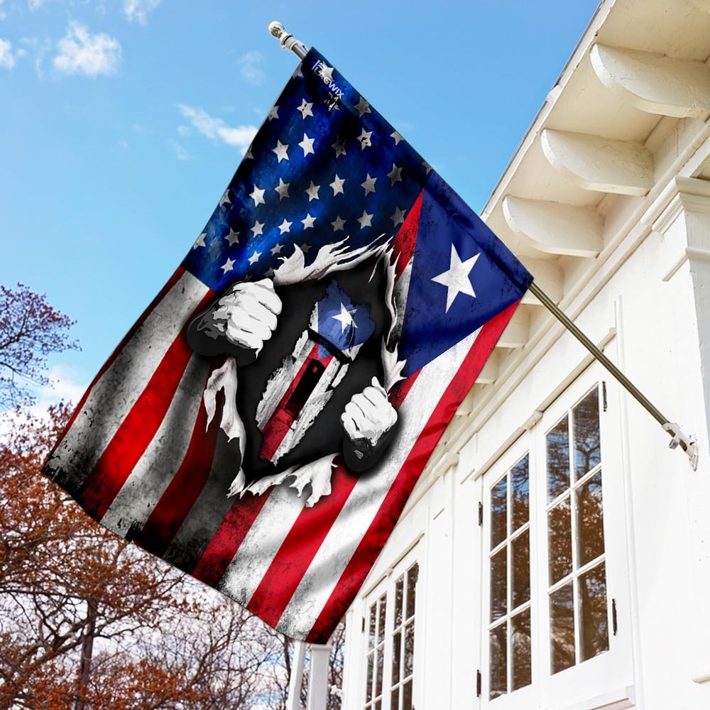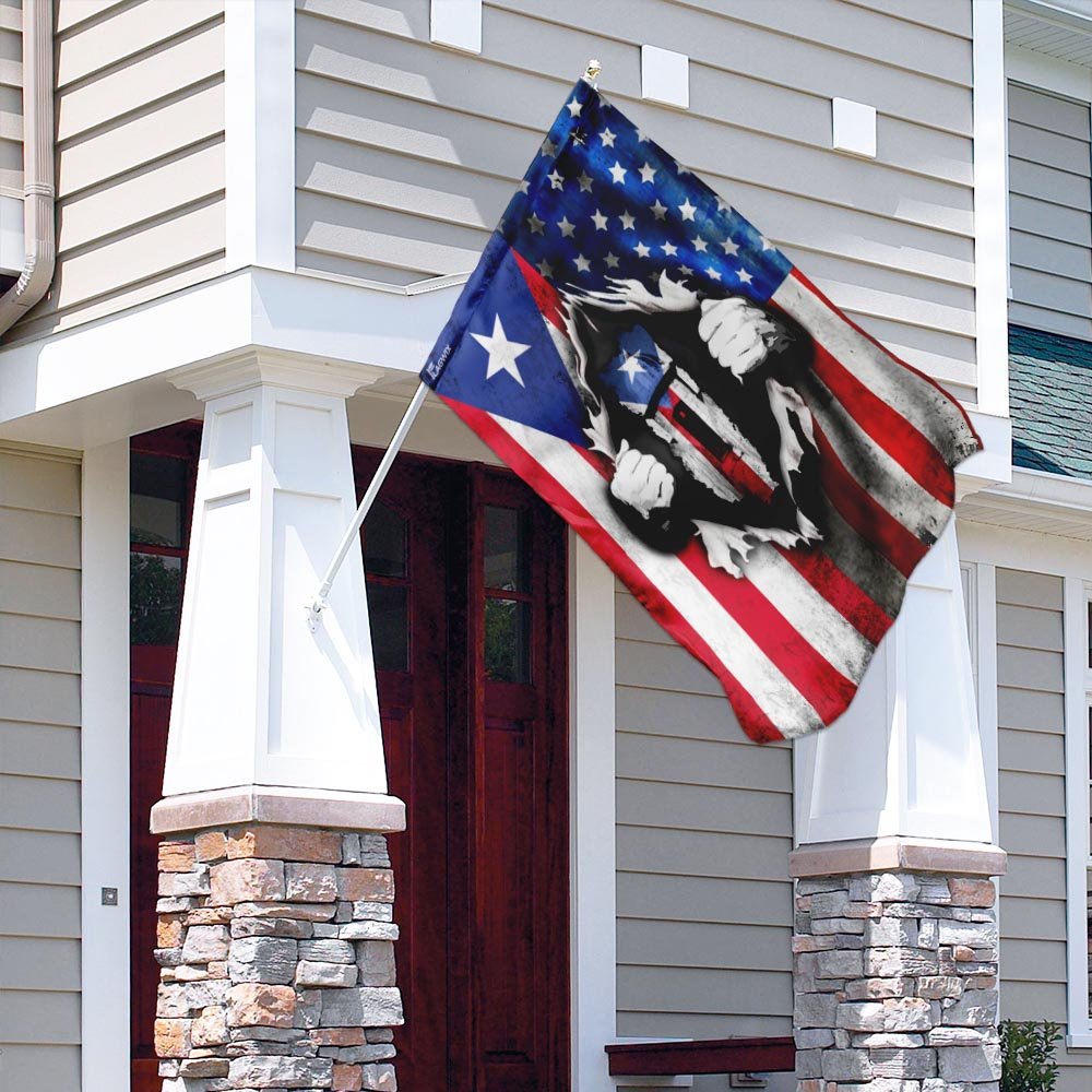 All flags are manufactured to American quality standards and custom-made to order. You will never be disappointed by the America Home With Puerto Rican Blood Flag.