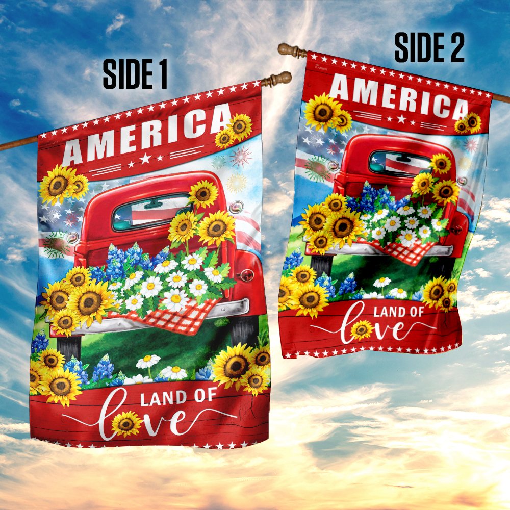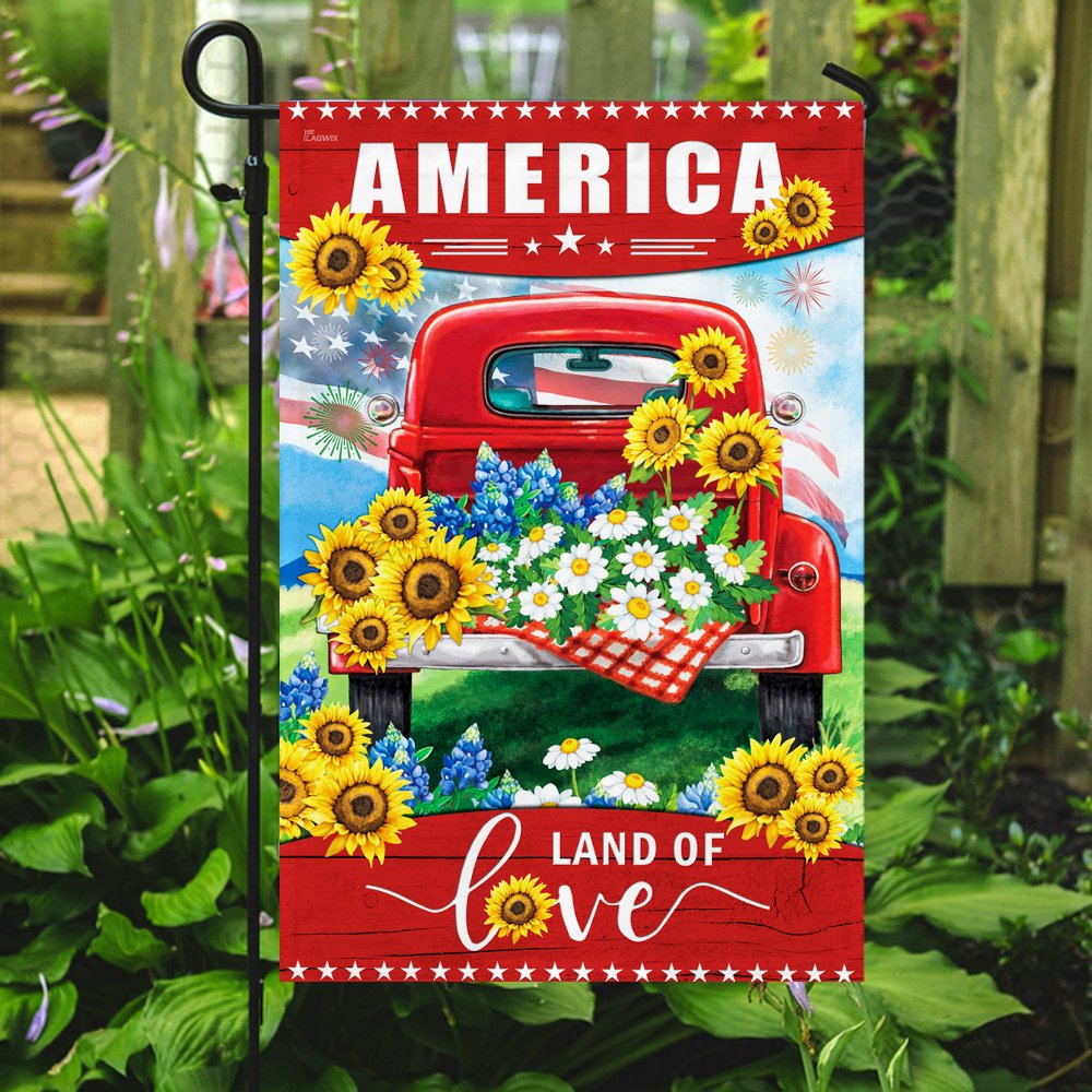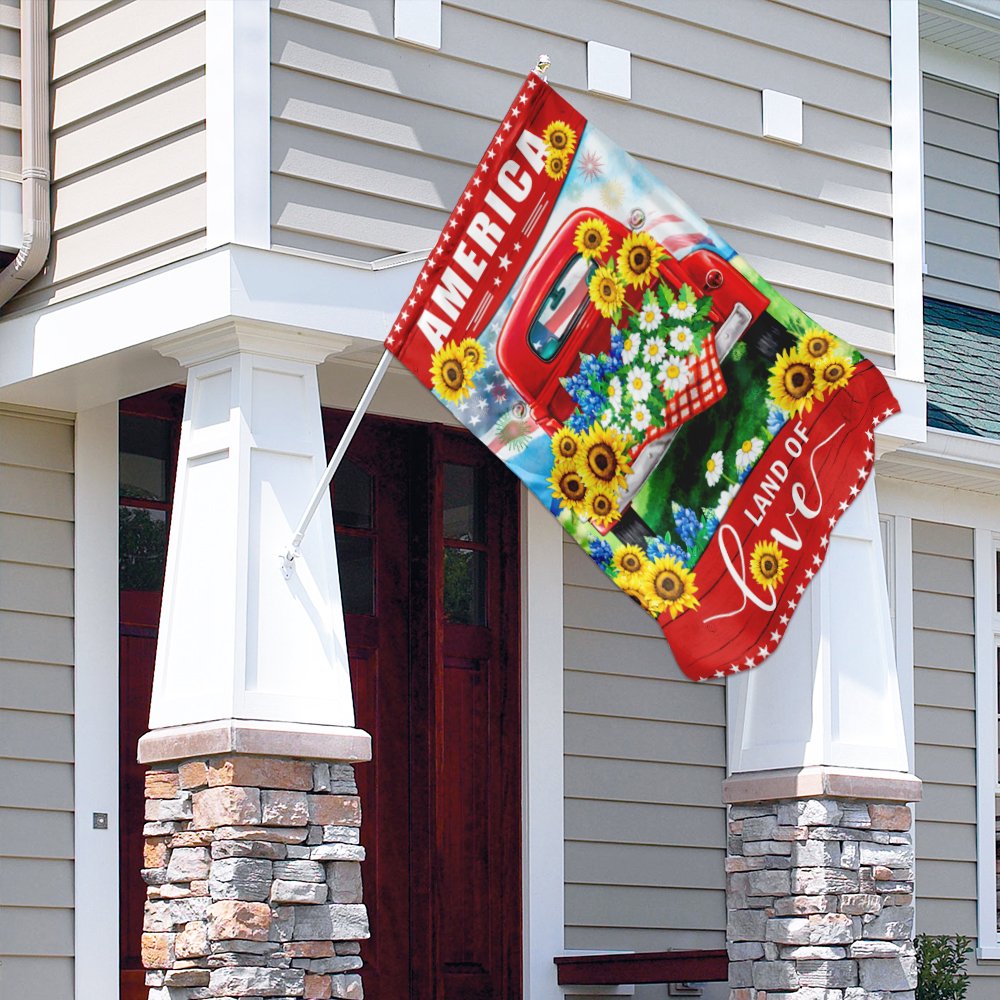 All flags are manufactured to American quality standards and custom-made to order. You will never be disappointed by the America Land Of Love Flag.