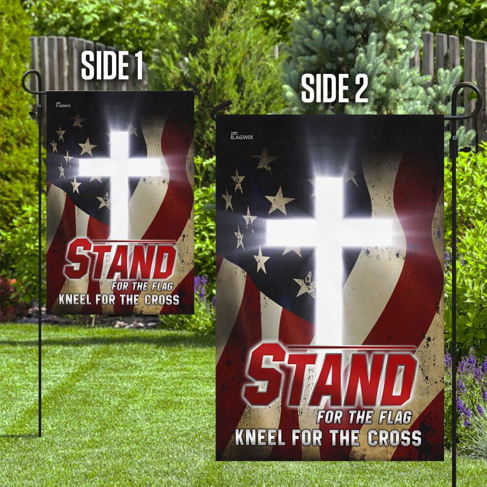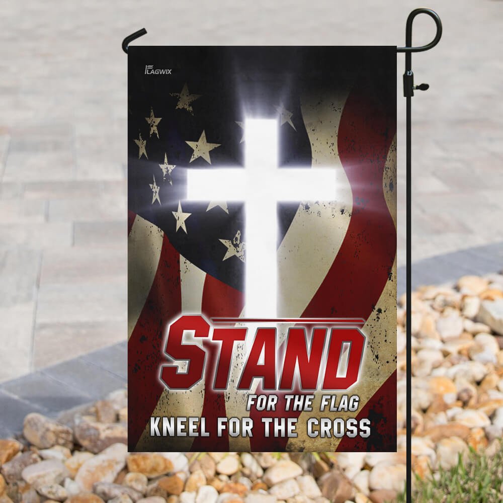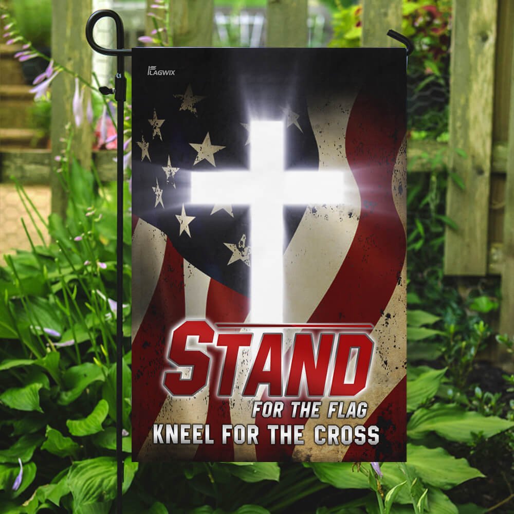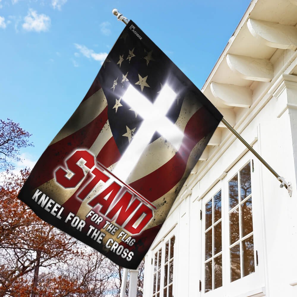 All flags are manufactured to American quality standards and custom-made to order. You will never be disappointed by the America. Stand For The Flag Kneel For The Cross Flag.