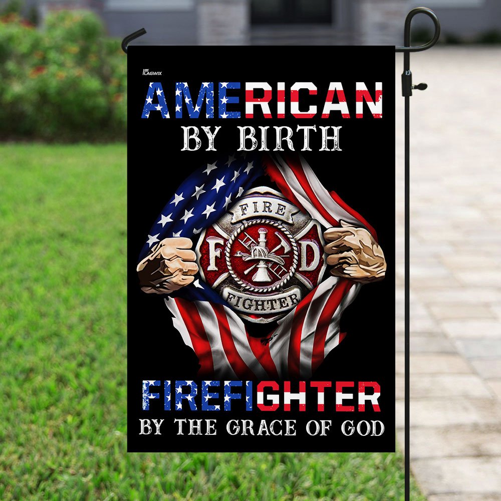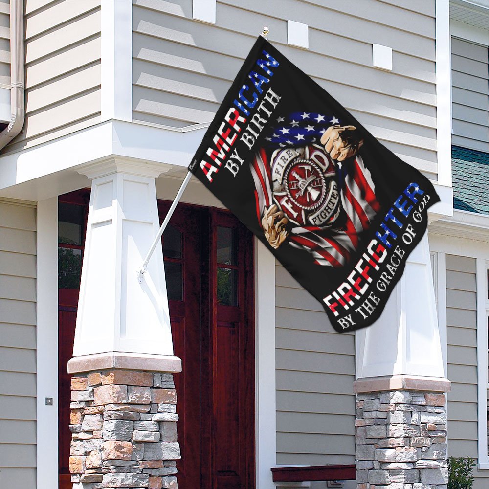 Take American By Birth Firefighter By The Grace Of God Flag To Decorate Your Home