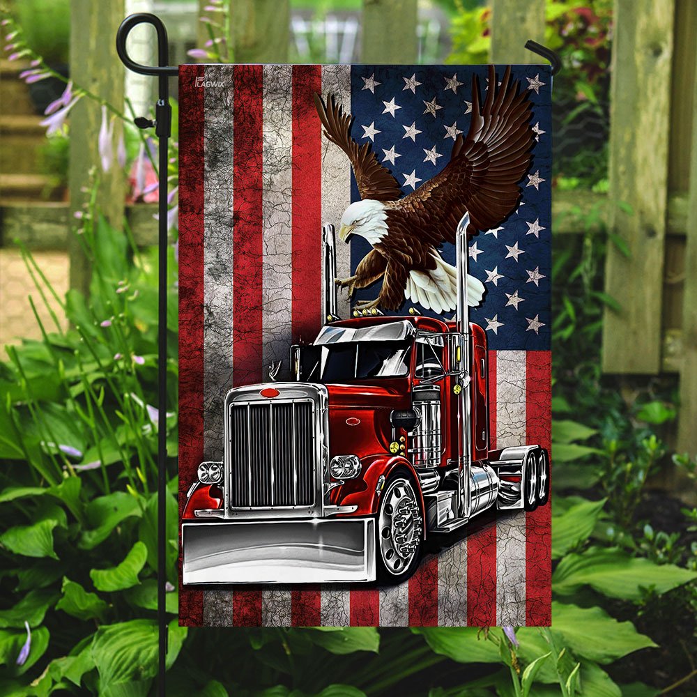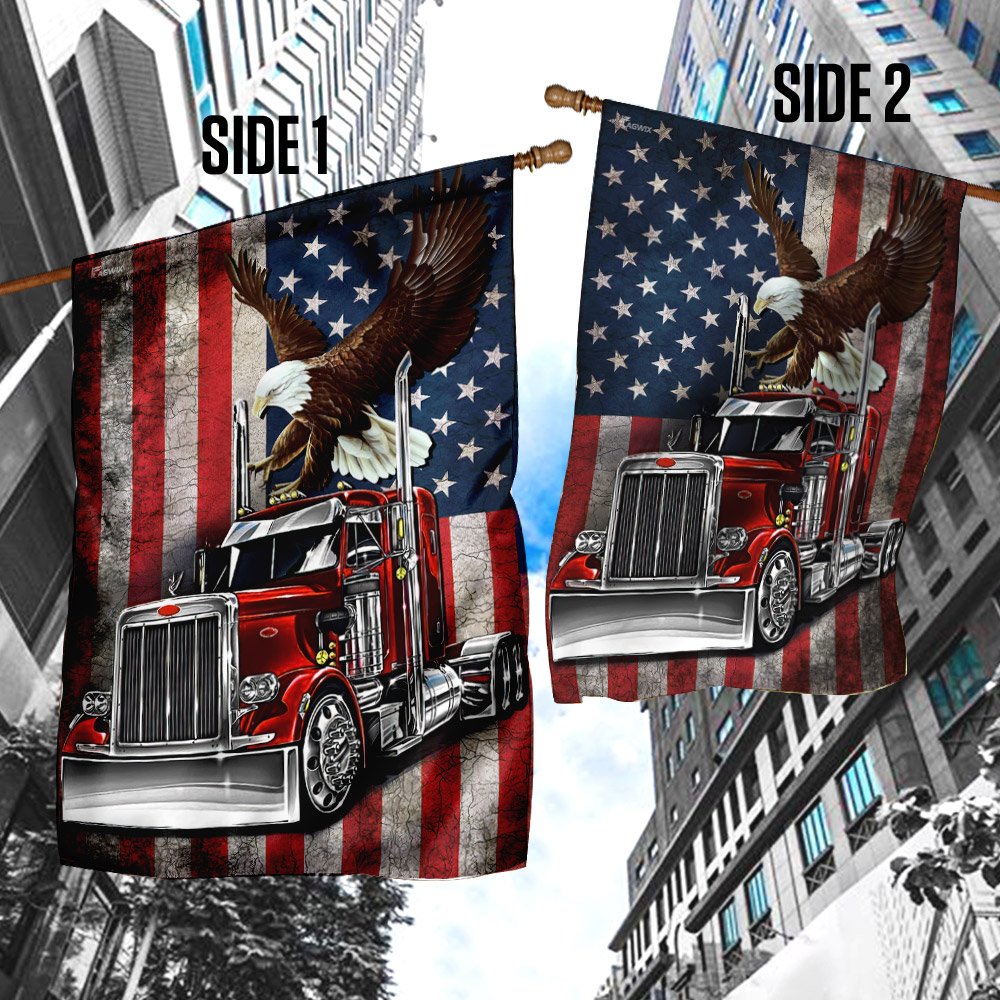 All flags are manufactured to American quality standards and custom-made to order. You will never be disappointed by the American Eagle Trucker Flag.