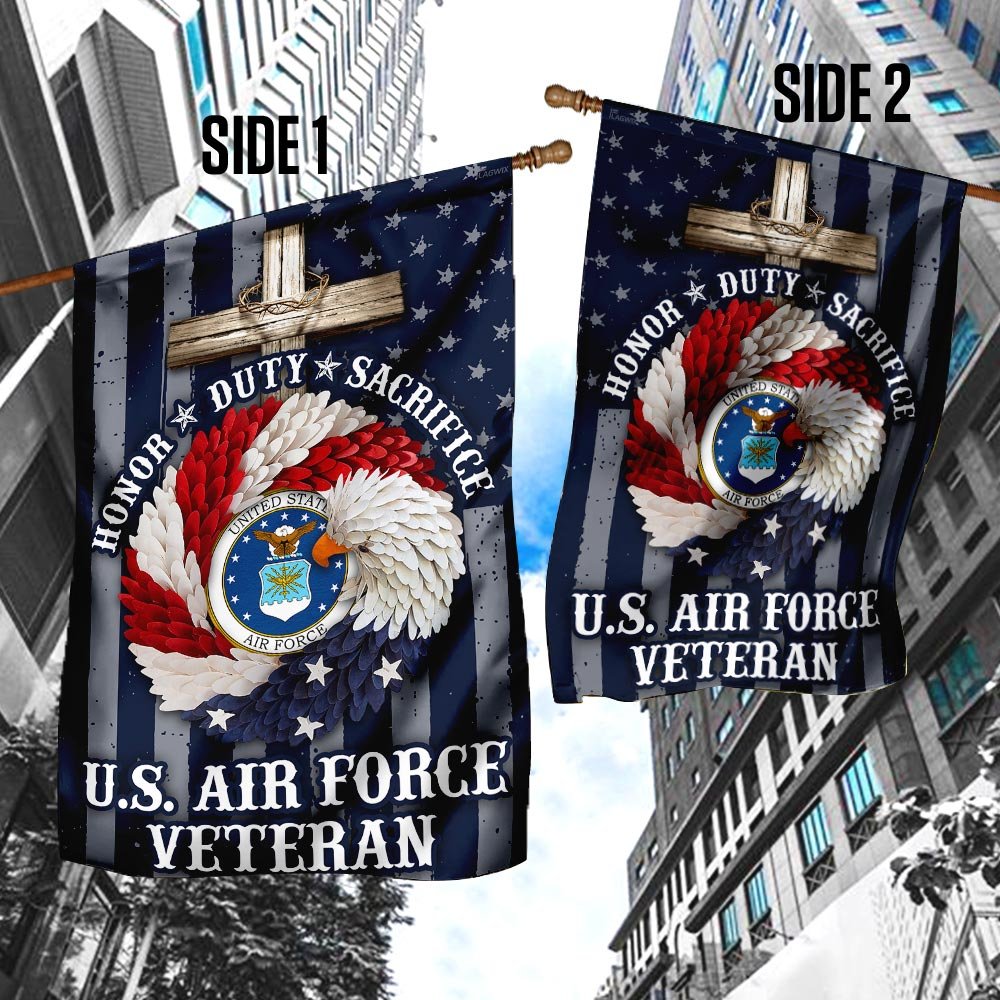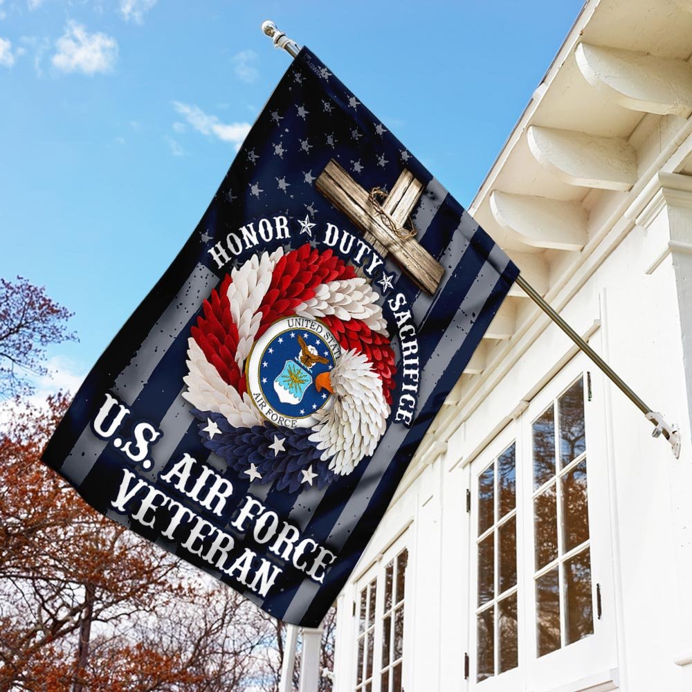 All flags are manufactured to American quality standards and custom-made to order. You will never be disappointed by the American Eagle Wreath With U.S Air Force Veteran Flag.