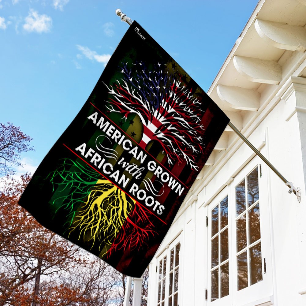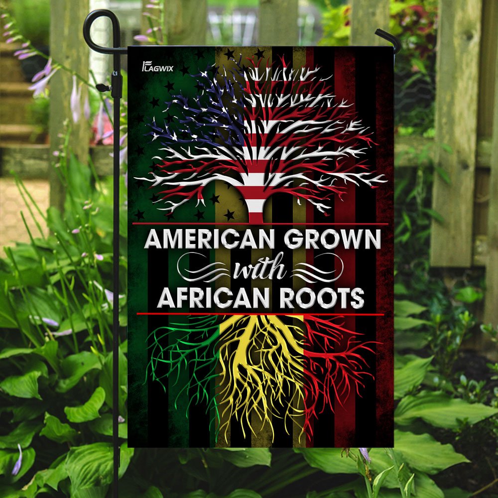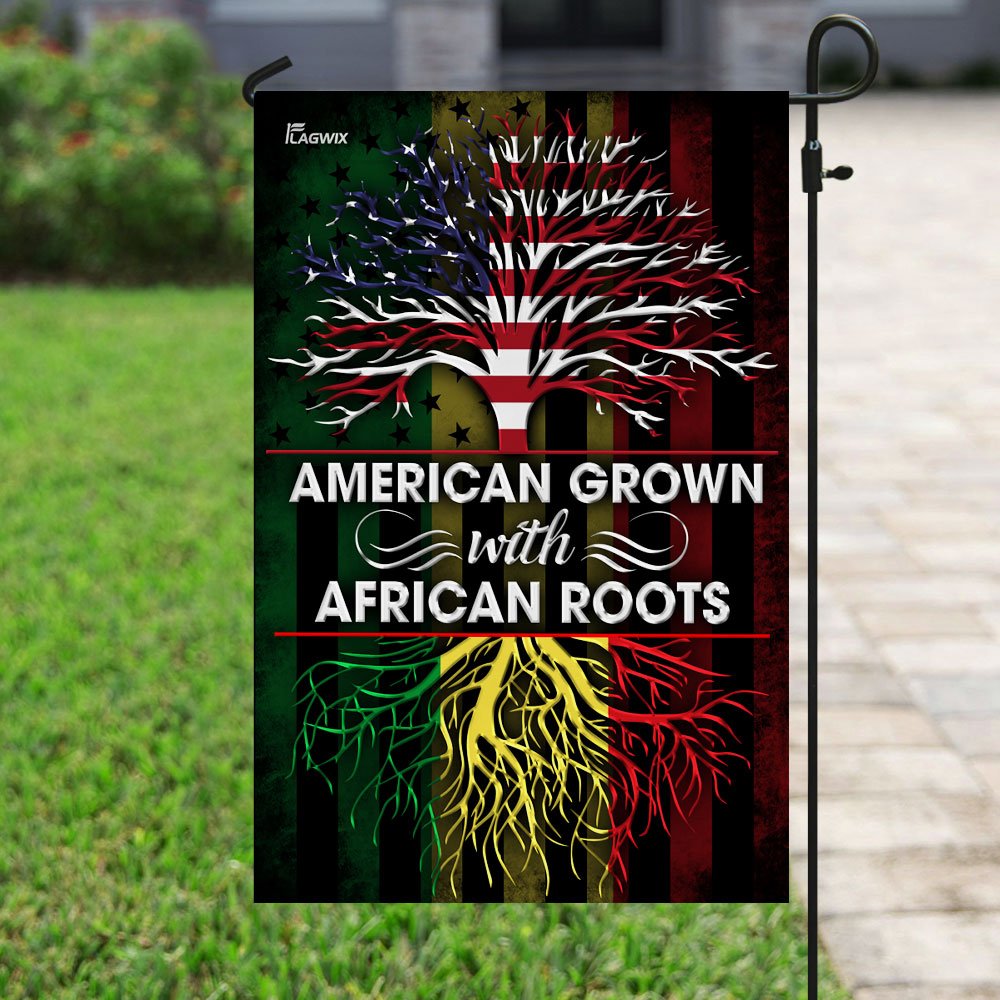 All flags are manufactured to American quality standards and custom-made to order. You will never be disappointed by the American Grown With African Roots Flag.