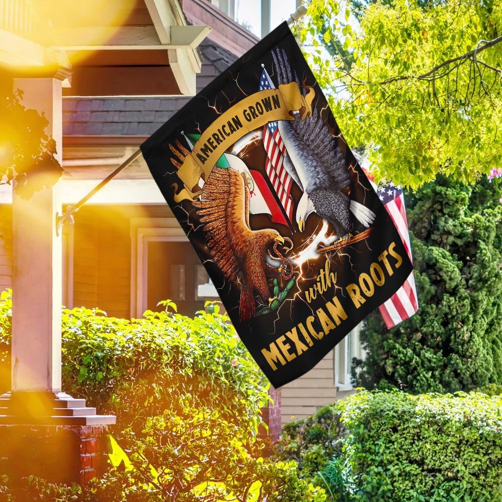 All flags are manufactured to American quality standards and custom-made to order. You will never be disappointed by the American Grown With Mexican Roots Flag.