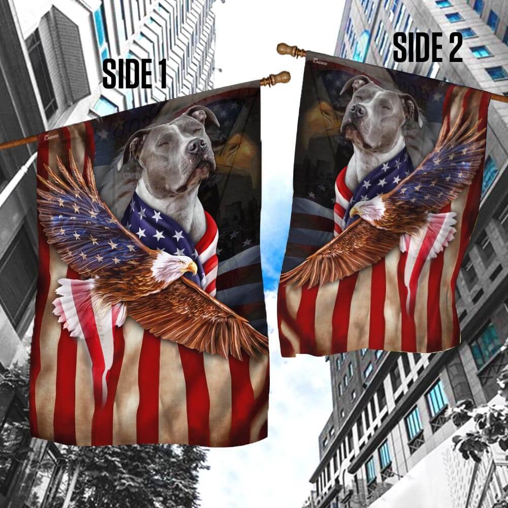All flags are manufactured to American quality standards and custom-made to order. You will never be disappointed by the American Pit Bull Terrier Wrapped In Glory American Flag.